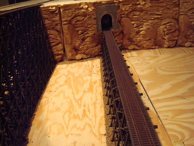 In the first photo, on the mid-level, is the track leaving Calgary. The right track entering the top tunnel portal is the Eastbound track. The left track exiting the tunnel portal is Westbound. Above the upper tunnel portal is an old abandoned coaling facility on the third and top level. Still on the mid-level, the spur to the left is Garrison. Garrison is serviced serviced from a Westbound train. After entering this tunnel portal, the train is out-of-sight for some time. It exits in the center photo on the track against the wall still Eastbound. The third photo is the the beginning and end of the reverse loop at one end of the dog-bone. (You are now into the unfinished zone.) |